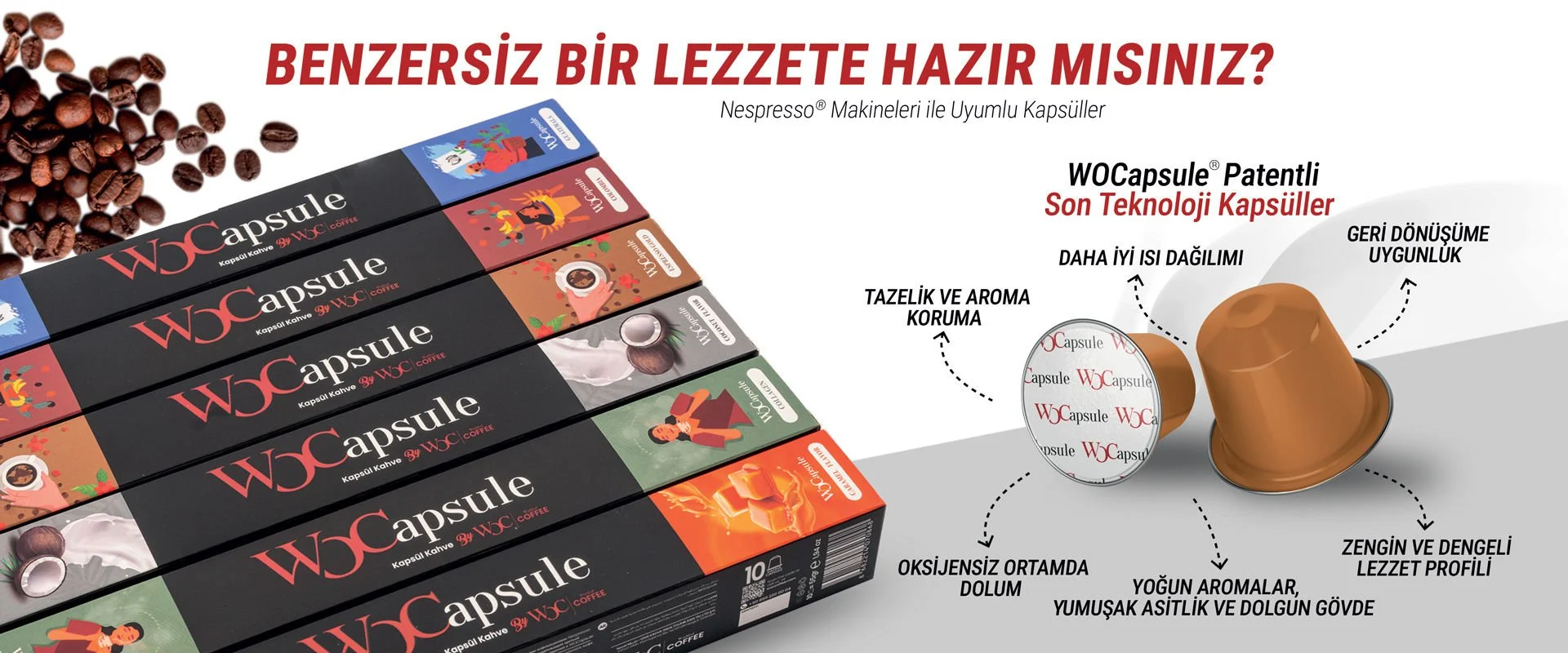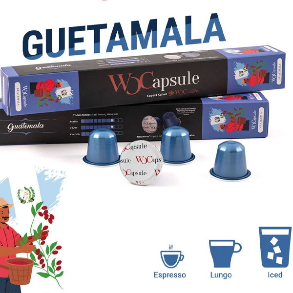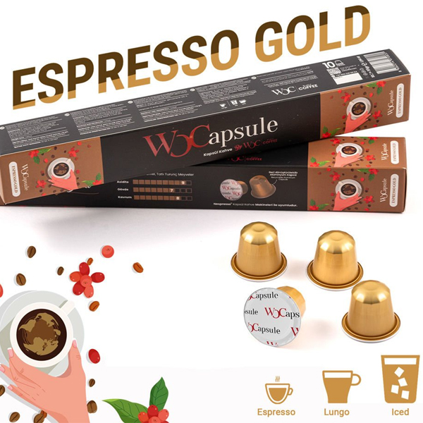 %100 alüminyum kapsül kullanıyoruz. Oksijen geçirgenliğinin minimum eviyede olmasını sağlayarak aroma ve tazeliği 2 seneye kadar muhafaza ediyor.